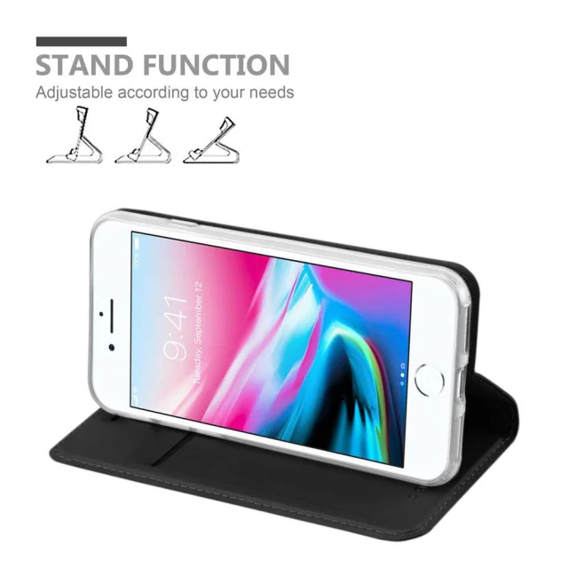 CADORABO Apple iPhone 7/7S/8/SE 2020 v klasična črna - Zaščitni ovitek z magnetnim zapiranjem, stoječo funkcijo in režo za kartice