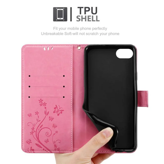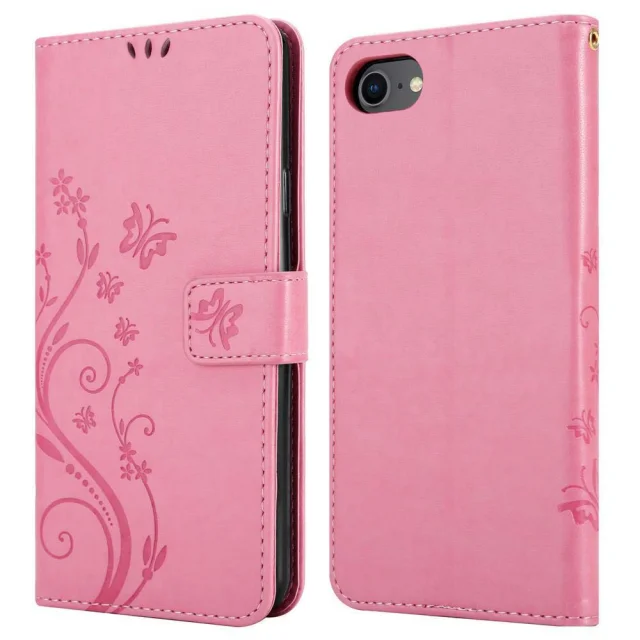 CADORABO Apple iPhone 7/7S/8/SE 2020 v klasična zlata - ovitek v cvetličnem dizajnu z magnetnim zapiranjem, stoječo funkcijo in režami za kartice