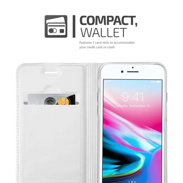 CADORABO Apple iPhone 7/7S/8/SE 2020 v klasično srebrno - Zaščitni ovitek z magnetnim zapiranjem, stoječo funkcijo in režo za kartice