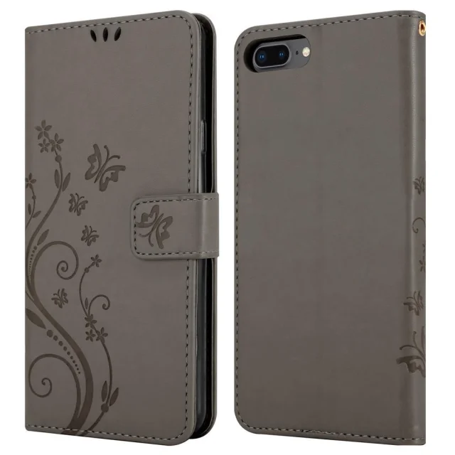 CADORABO Apple iPhone 7 PLUS/7S PLUS/8 PLUS črna - ovitek v cvetličnem dizajnu z magnetnim zapiranjem, stoječo funkcijo in režami za kartice