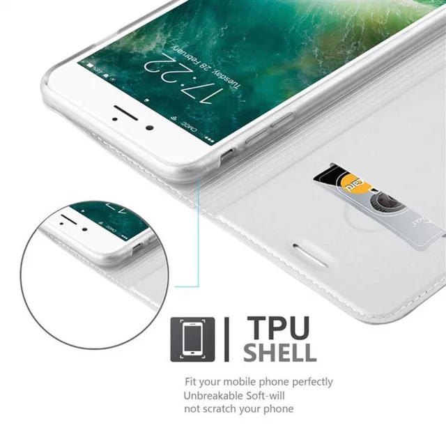 CADORABO Apple iPhone 7 PLUS/7S PLUS/8 PLUS v klasično srebrno - Zaščitni ovitek z magnetnim zapiranjem, stoječo funkcijo in režo za kartice