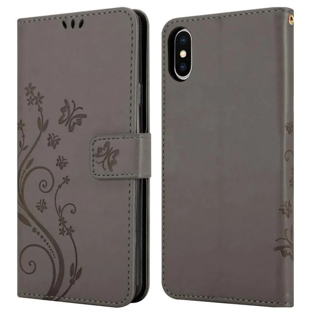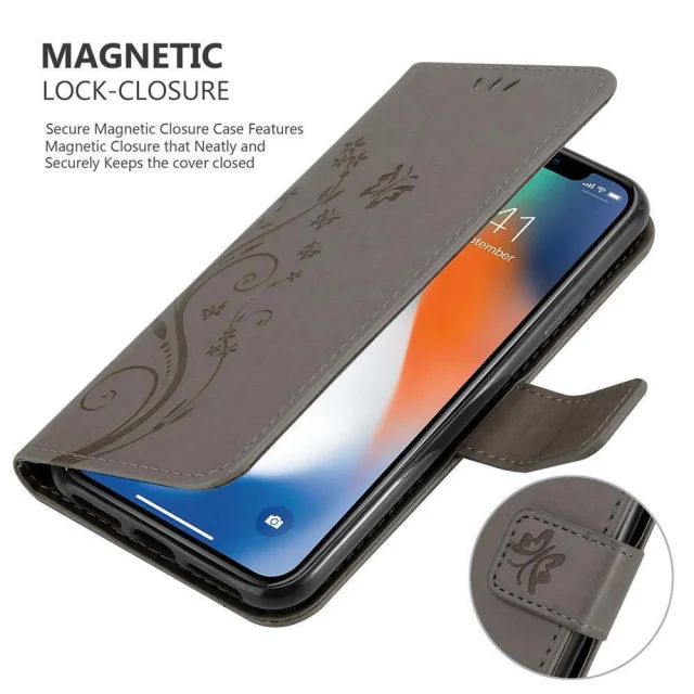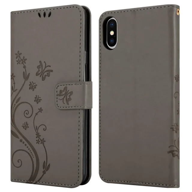 CADORABO Apple iPhone X/XS v klasična črna - ovitek v cvetličnem dizajnu z magnetnim zapiranjem, stoječo funkcijo in režami za kartice