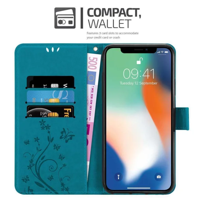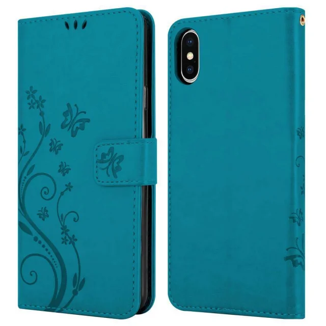 CADORABO Apple iPhone X/XS v klasična rožnata zlata - ovitek v cvetličnem dizajnu z magnetnim zapiranjem, stoječo funkcijo in režami za kartice