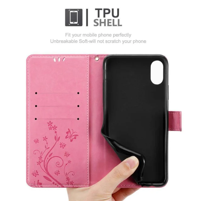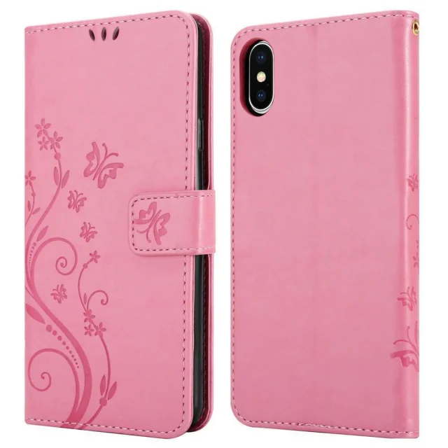 CADORABO Apple iPhone X/XS v klasična zlata - ovitek v cvetličnem dizajnu z magnetnim zapiranjem, stoječo funkcijo in režami za kartice