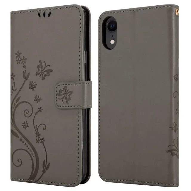CADORABO Apple iPhone XR v klasična črna - ovitek v cvetličnem dizajnu z magnetnim zapiranjem, stoječo funkcijo in režami za kartice
