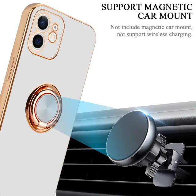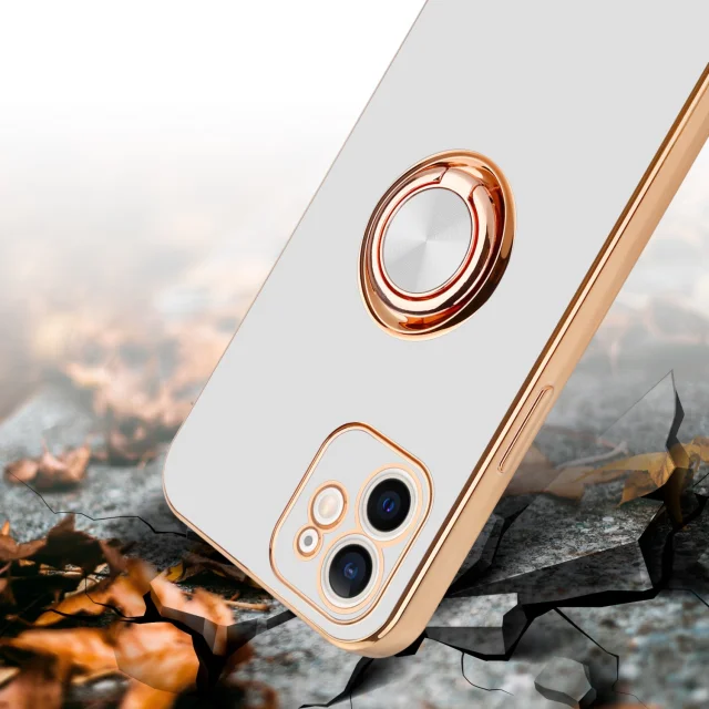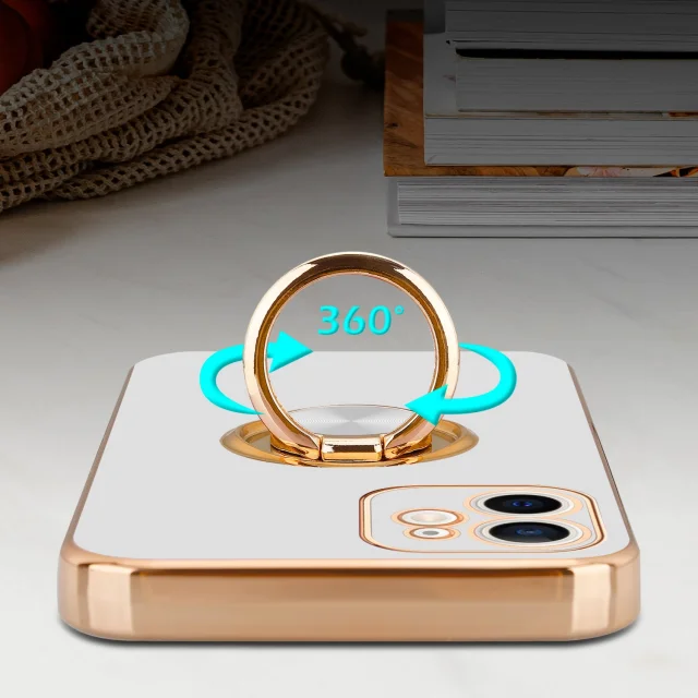CADORABO Apple v sijajnem belem - zlatu z obročem silikonski/TPU ovitek z zaščito pred kamero in držalom magnetnega avtomobila