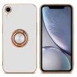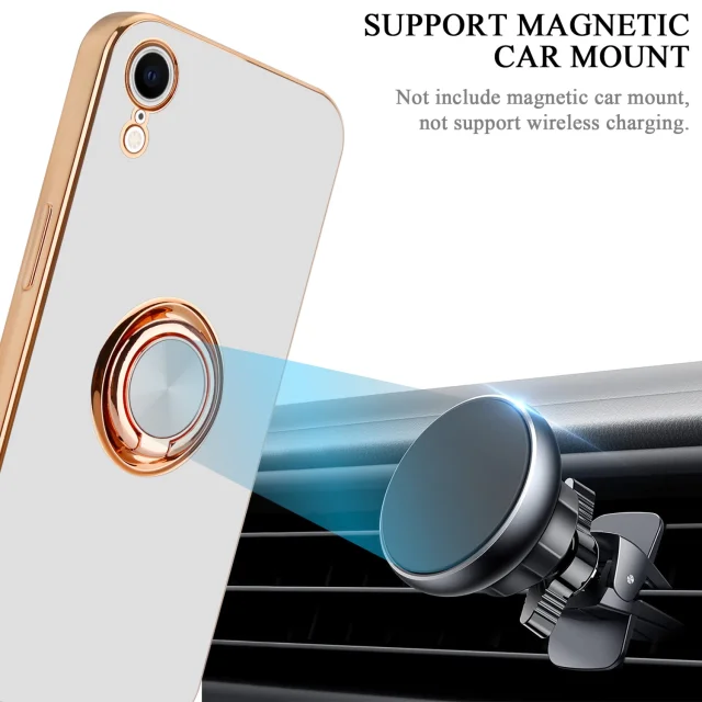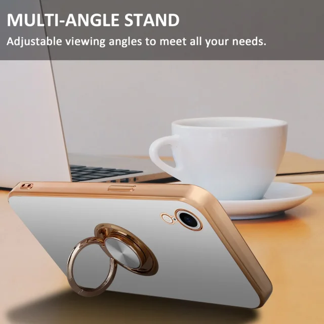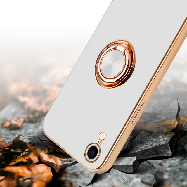 CADORABO Apple v sijajnem belem - zlatu z obročem silikonski/TPU ovitek z zaščito pred kamero in držalom magnetnega avtomobila