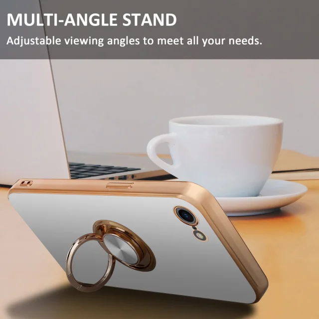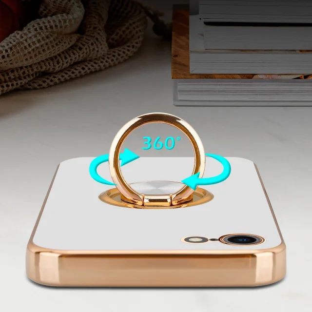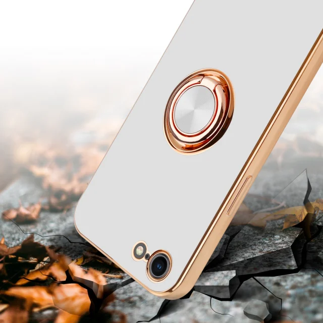 CADORABO Apple v sijajnem belem - zlatu z obročem silikonski/TPU ovitek z zaščito pred kamero in držalom magnetnega avtomobila