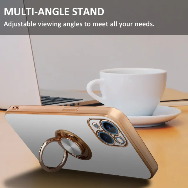 CADORABO Apple v sijajnem belem - zlatu z obročem silikonski/TPU ovitek z zaščito pred kamero in držalom magnetnega avtomobila