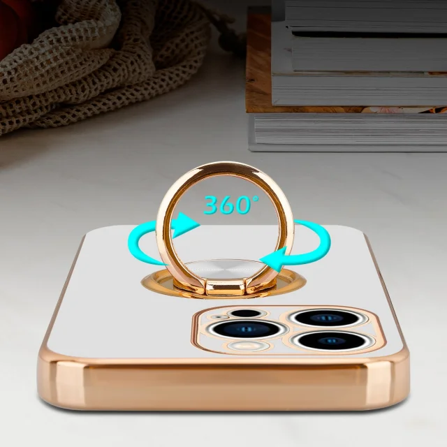 CADORABO Apple v sijajnem belem - zlatu z obročem silikonski/TPU ovitek z zaščito pred kamero in držalom magnetnega avtomobila