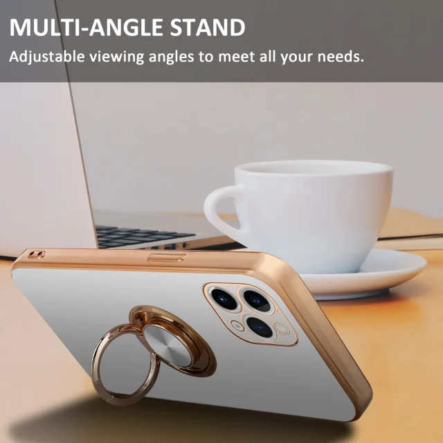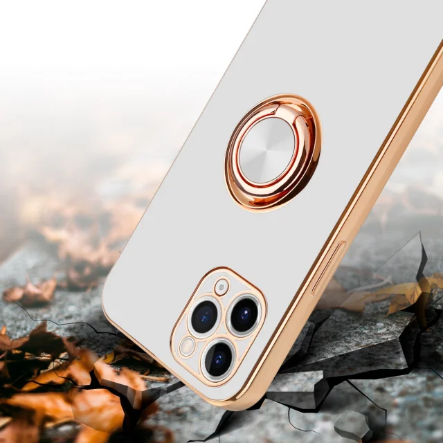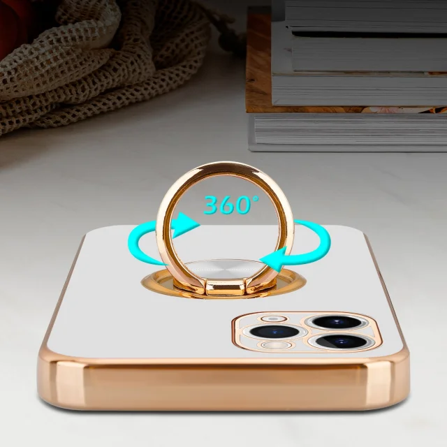 CADORABO Apple v sijajnem belem - zlatu z obročem silikonski/TPU ovitek z zaščito pred kamero in držalom magnetnega avtomobila