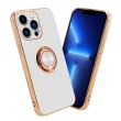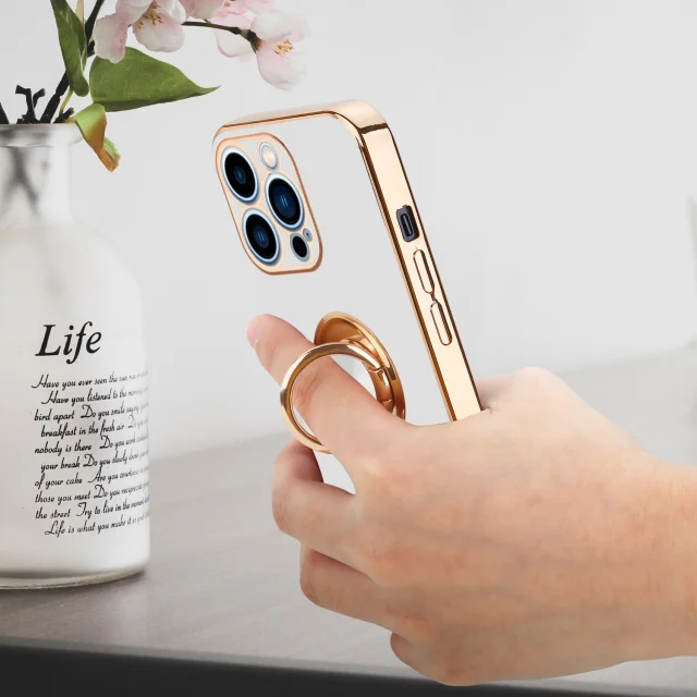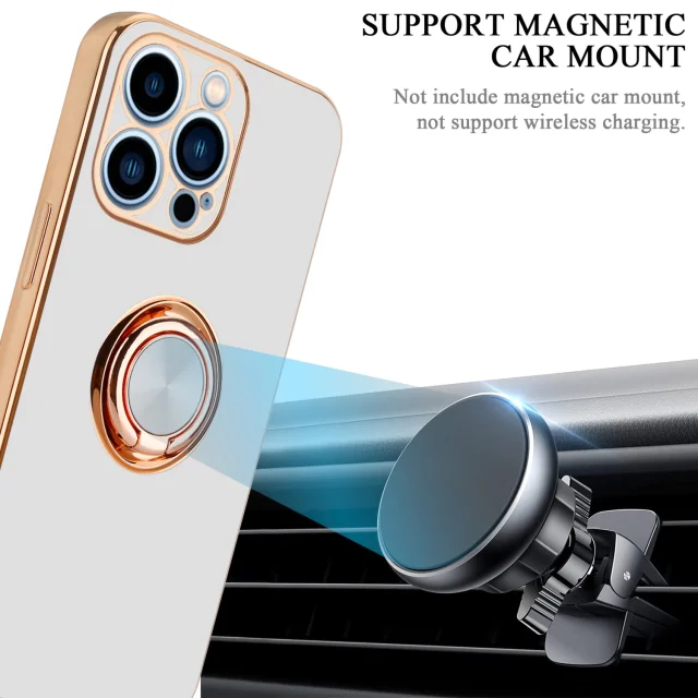 CADORABO Apple v sijajnem belem - zlatu z obročem silikonski/TPU ovitek z zaščito pred kamero in držalom magnetnega avtomobila
