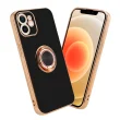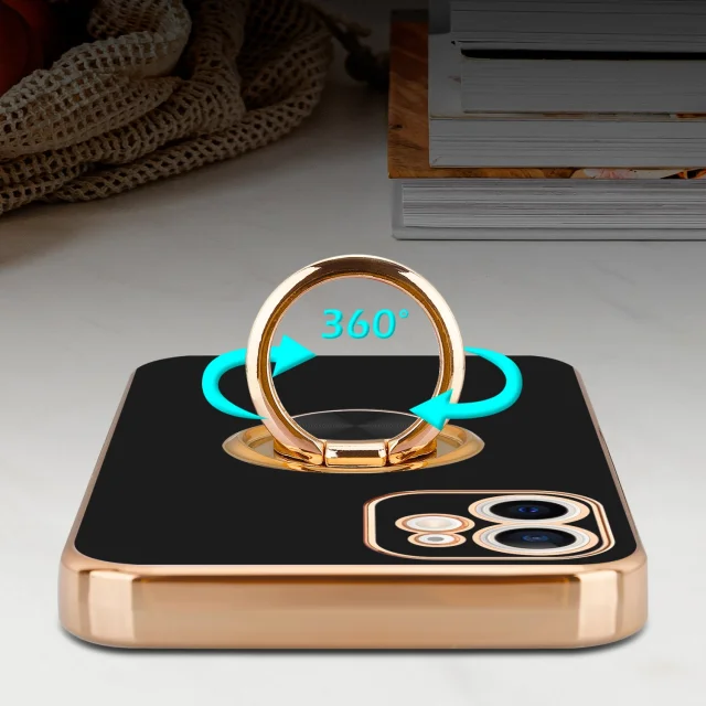 CADORABO Apple v sijajnem črni barvi - zlato z obročem silikonski/TPU ovitek z zaščito pred kamero in držalom magnetnega avtomobila