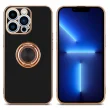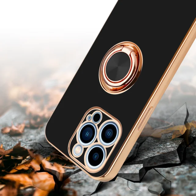 CADORABO Apple v sijajnem črni barvi - zlato z obročem silikonski/TPU ovitek z zaščito pred kamero in držalom magnetnega avtomobila