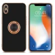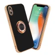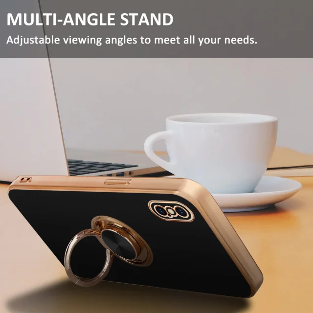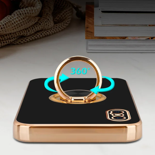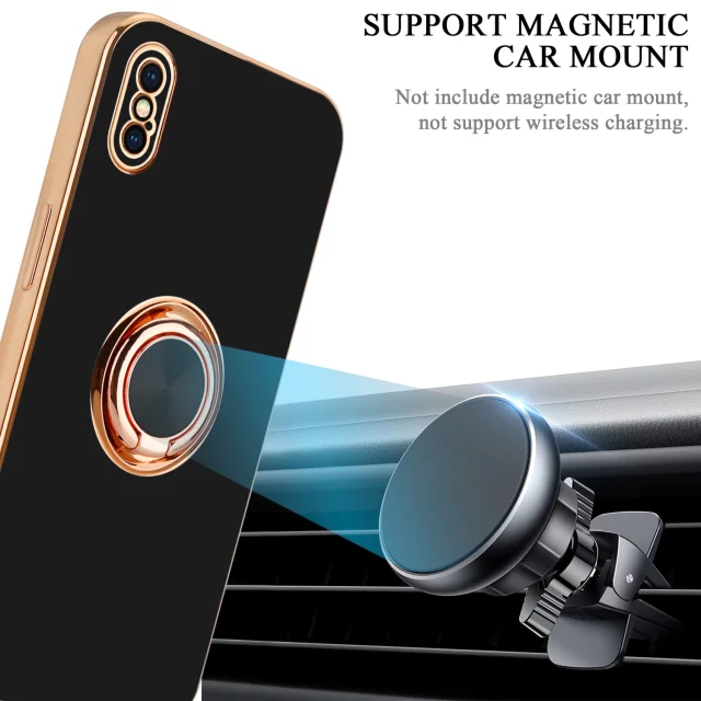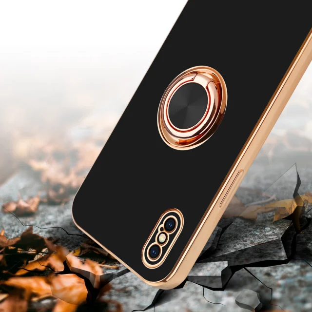 CADORABO Apple v sijajnem črni barvi - zlato z obročem silikonski/TPU ovitek z zaščito pred kamero in držalom magnetnega avtomobila