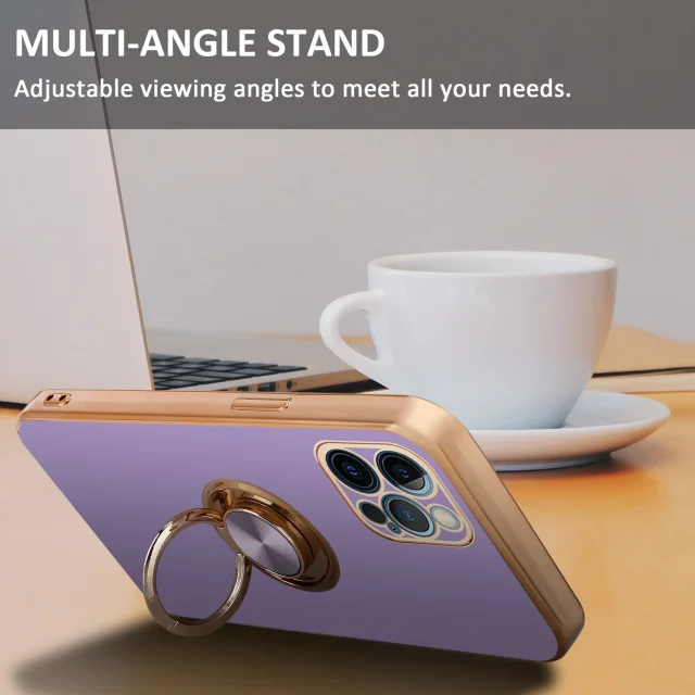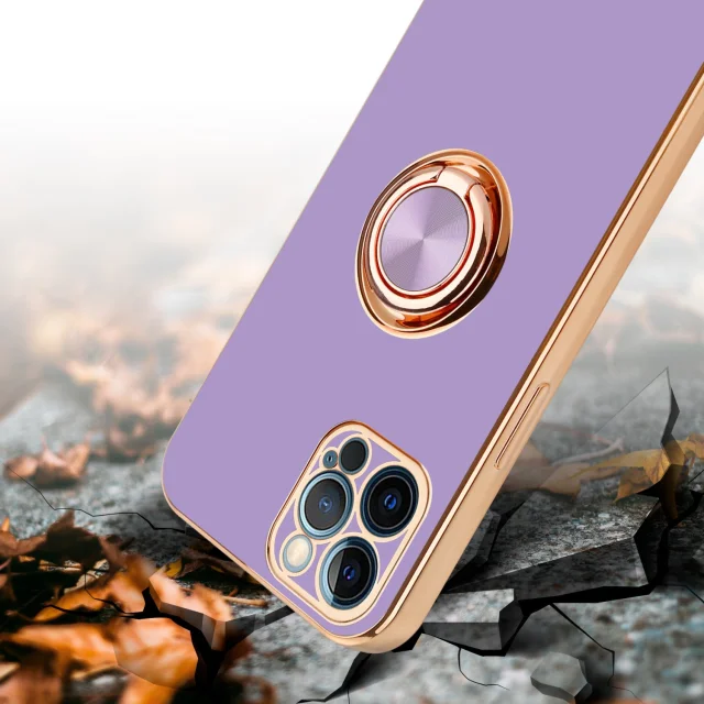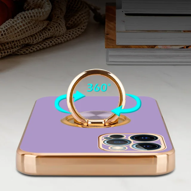 CADORABO Apple v sijajnem svetlobnem vijoličnem - Zlato z obročem silikonski/TPU ovitek z zaščito pred kamero in držalom magnetnega avtomobila