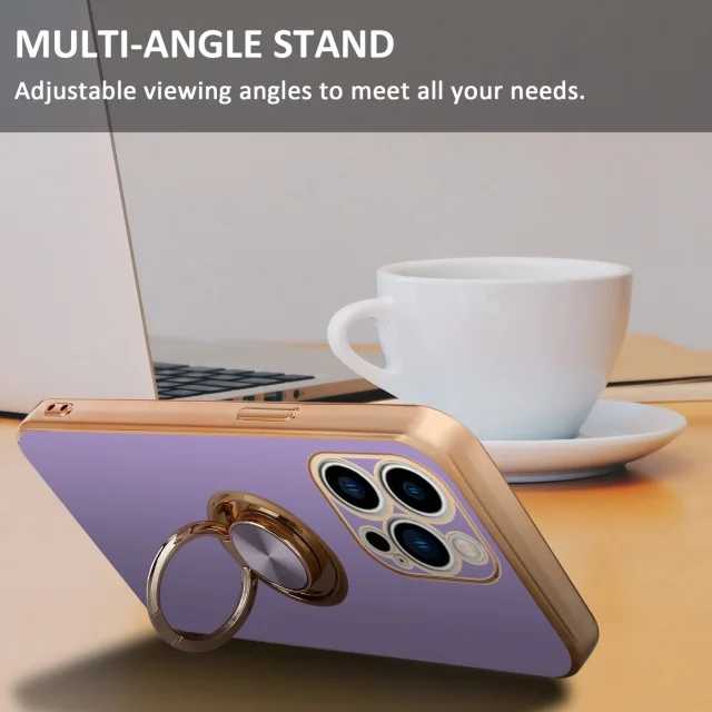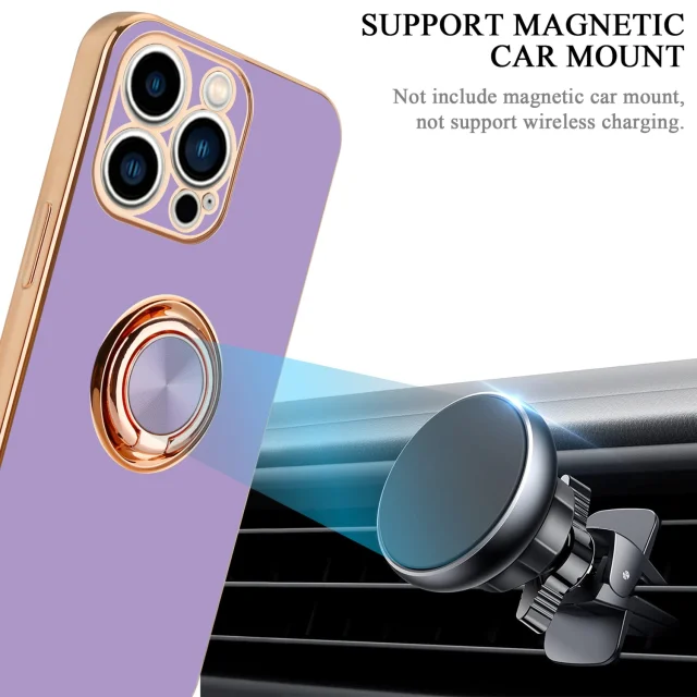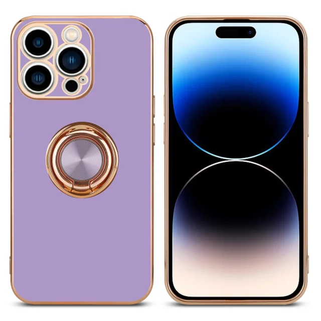 CADORABO Apple v sijajnem svetlobnem vijoličnem - Zlato z obročem silikonski/TPU ovitek z zaščito pred kamero in držalom magnetnega avtomobila