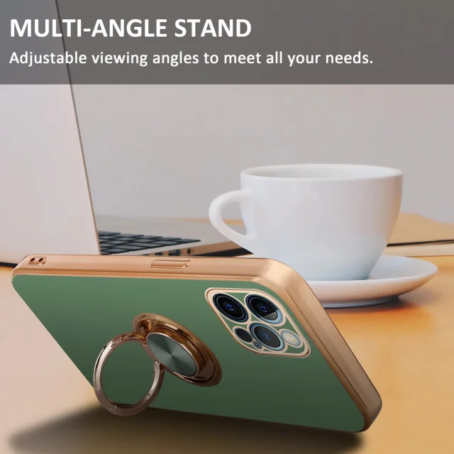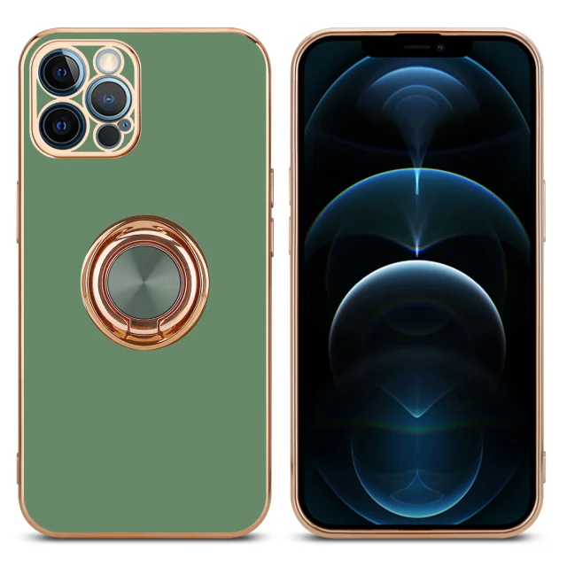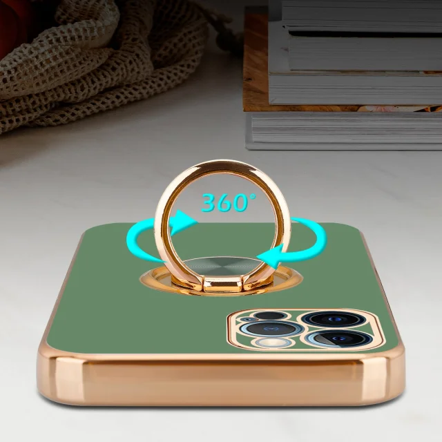 CADORABO Apple v sijajni svetlo zeleni barvi - Zlato z obročem silikonski/TPU ovitek z zaščito pred kamero in držalom magnetnega avtomobila