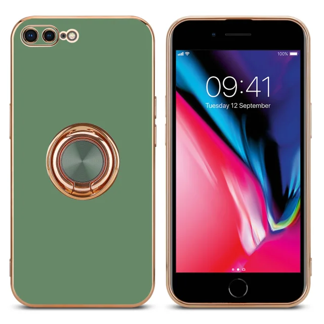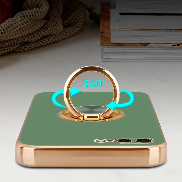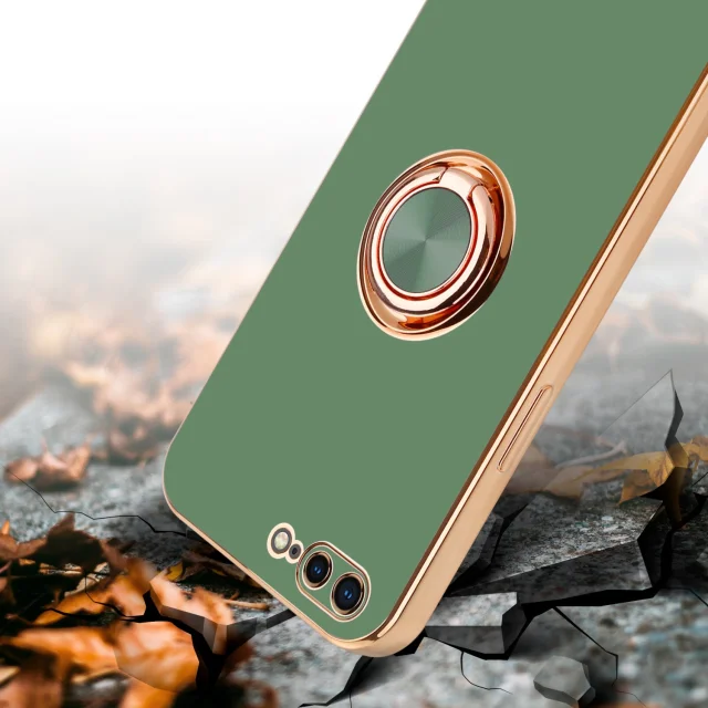 CADORABO Apple v sijajni svetlo zeleni barvi - Zlato z obročem silikonski/TPU ovitek z zaščito pred kamero in držalom magnetnega avtomobila