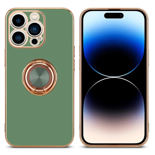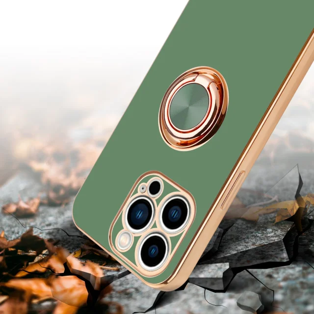 CADORABO Apple v sijajni svetlo zeleni barvi - Zlato z obročem silikonski/TPU ovitek z zaščito pred kamero in držalom magnetnega avtomobila