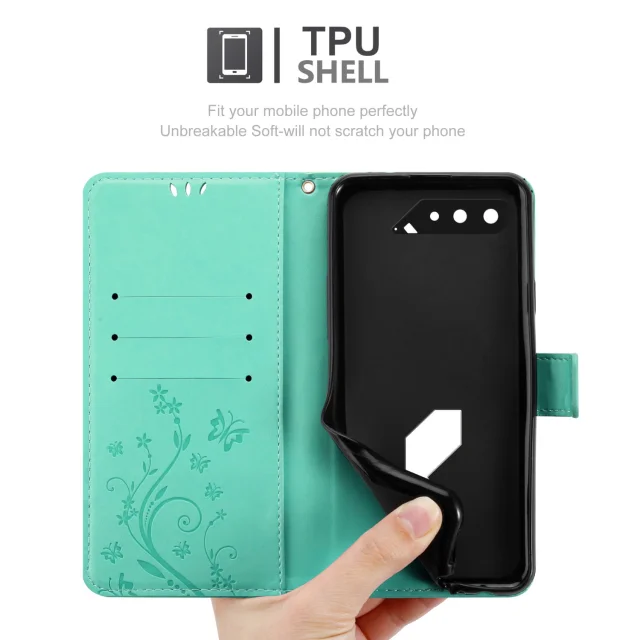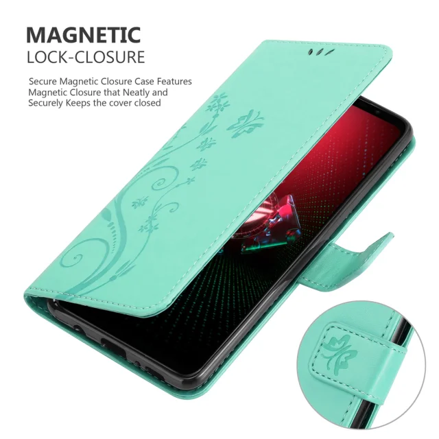 CADORABO ASUS v cvetlični turkizni - Zaščitni pokrov pri oblikovanju cvetja z magnetnim zapiranjem, stoječimi funkcijami in režami za kartice