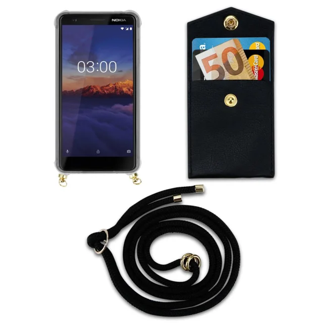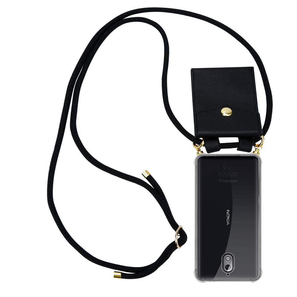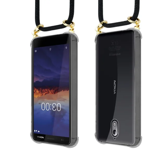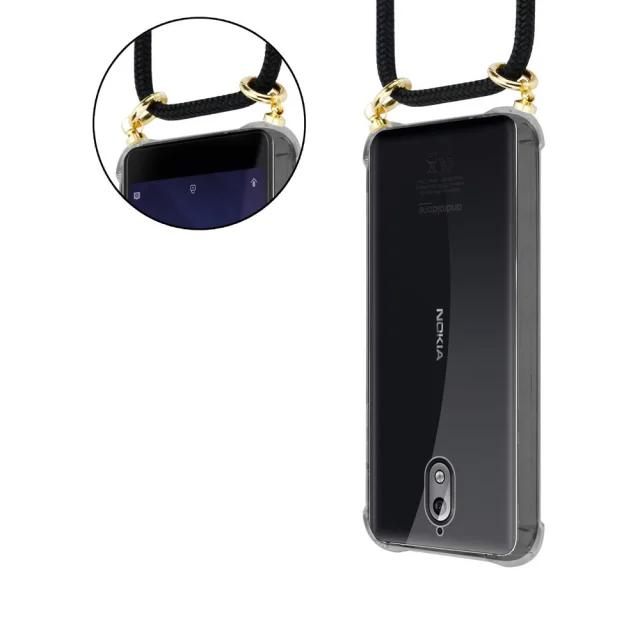 CADORABO BEACIJA MOBILNE PELETON, združljiva z Nokia v črnem - silikonskem zaščitnem pokrovu z zlatimi obroči, kabelskim pasom in snemljivim ohišjem