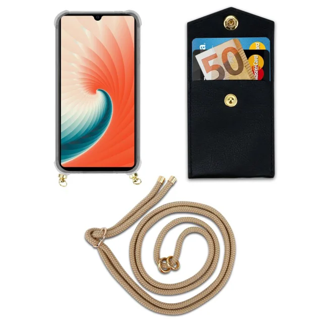 CADORABO CADORABO BEACIJA Združljiva s Huawei v Shiny Brown - Silikonski zaščitni pokrov z zlatimi obroči, jermen za vrvi in snemljiv ohišje