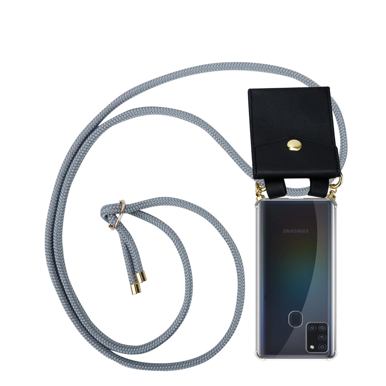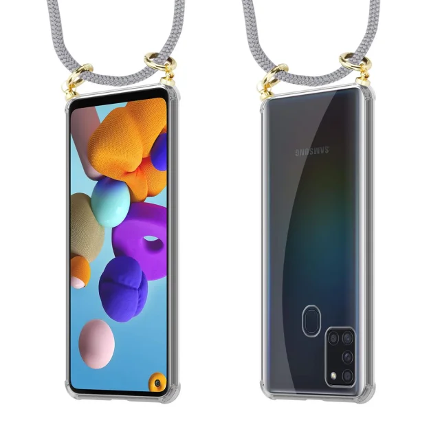 CADORABO CADORABO BEACIJA Združljiva s Samsungom v Srebrno sivo - silikonski zaščitni pokrov z zlatimi obroči, pasom za vrvi in snemljivim ohišjem