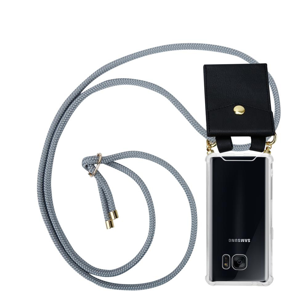 CADORABO CADORABO BEACIJA Združljiva s Samsungom v Srebrno sivo - silikonski zaščitni pokrov z zlatimi obroči, pasom za vrvi in snemljivim ohišjem