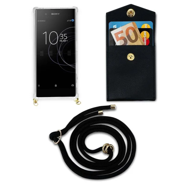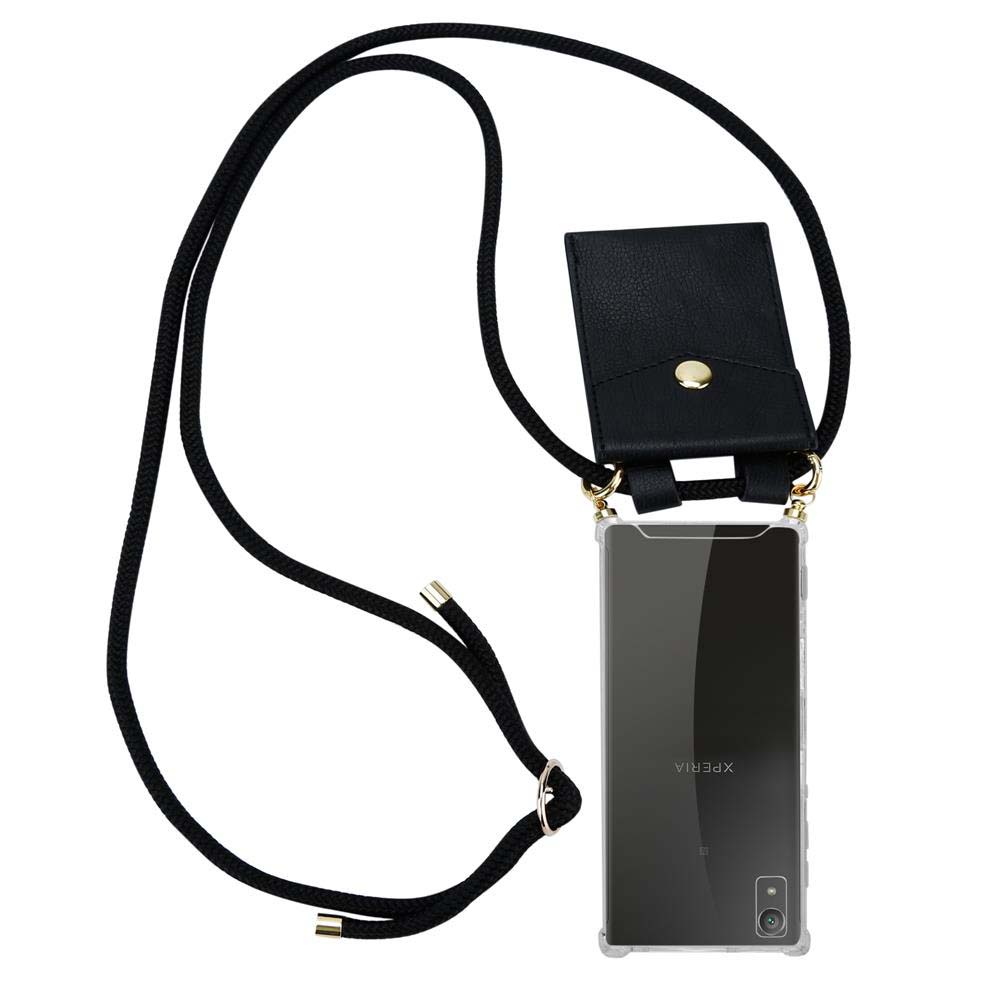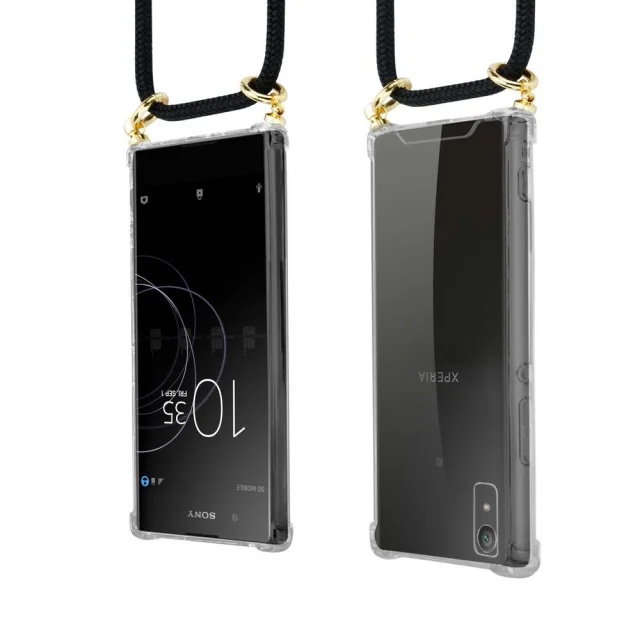 CADORABO CADORABO BEACIJA Združljiva s Sonyjem v črni barvi - Silikonski zaščitni pokrov z zlatimi obroči, pasom za vrvi in snemljivim ohišjem