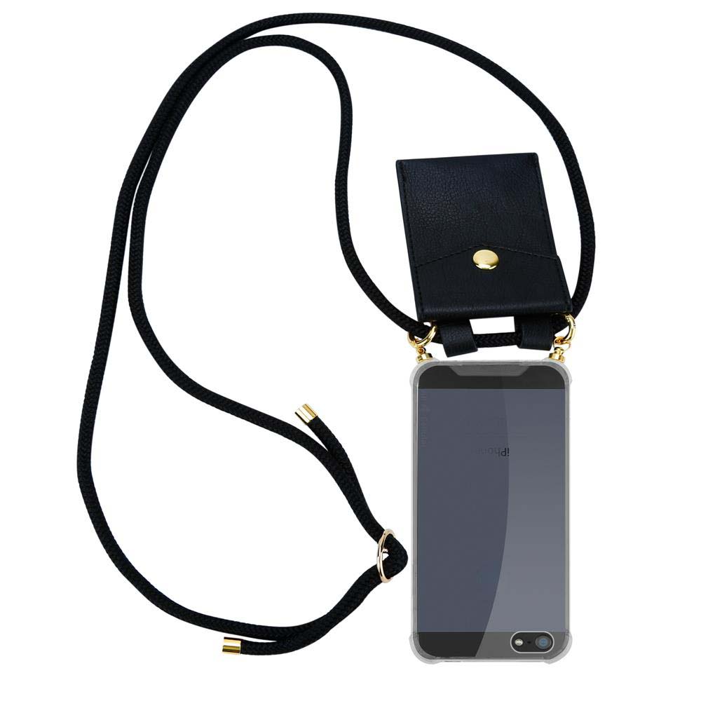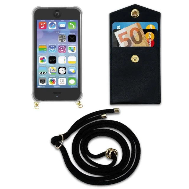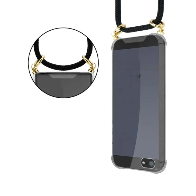 CADORABO CADORABO BEACIJA Združljiva z Apple -om v črni barvi - Silikonski zaščitni pokrov z zlatimi obroči, jermen za vrvi in snemljivimi ohišjem