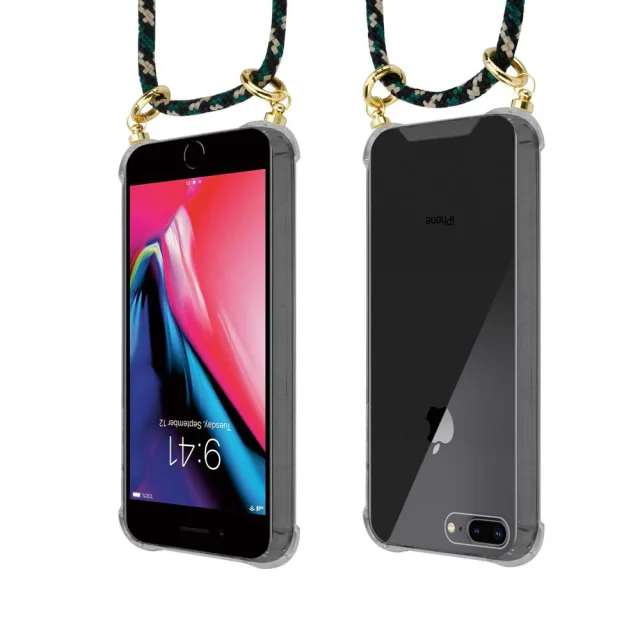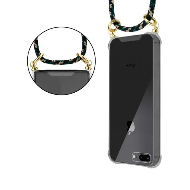 CADORABO CADORABO BEACIJA, Združljiva z Apple v kamuflažah - silikonski zaščitni pokrov z zlatimi obroči, jermen za vrvi in ​​snemljiv ohišje