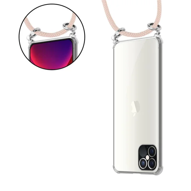 CADORABO CADORABO BEACIJA Združljiva z Apple v Pearly Rosegold - Silikonski zaščitni pokrov s srebrnimi obroči, kabelskim pasom in snemljivim primerom