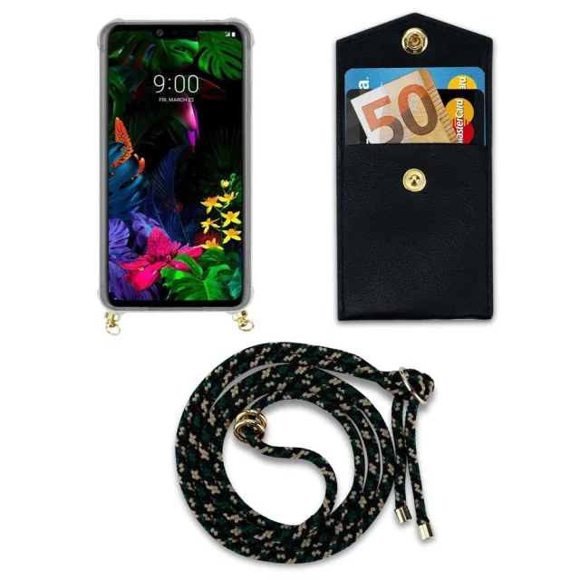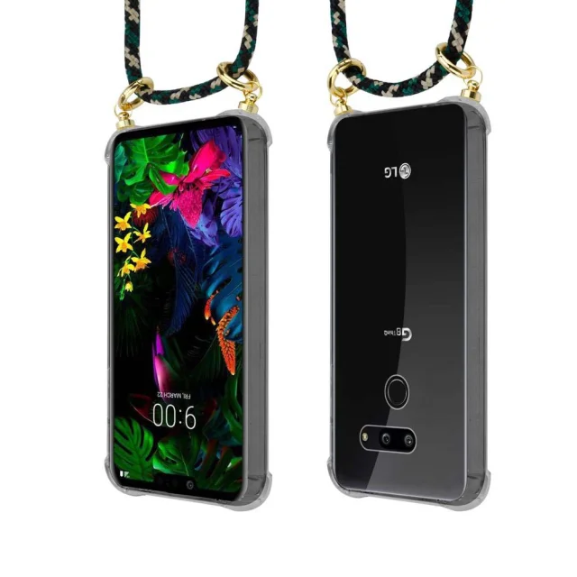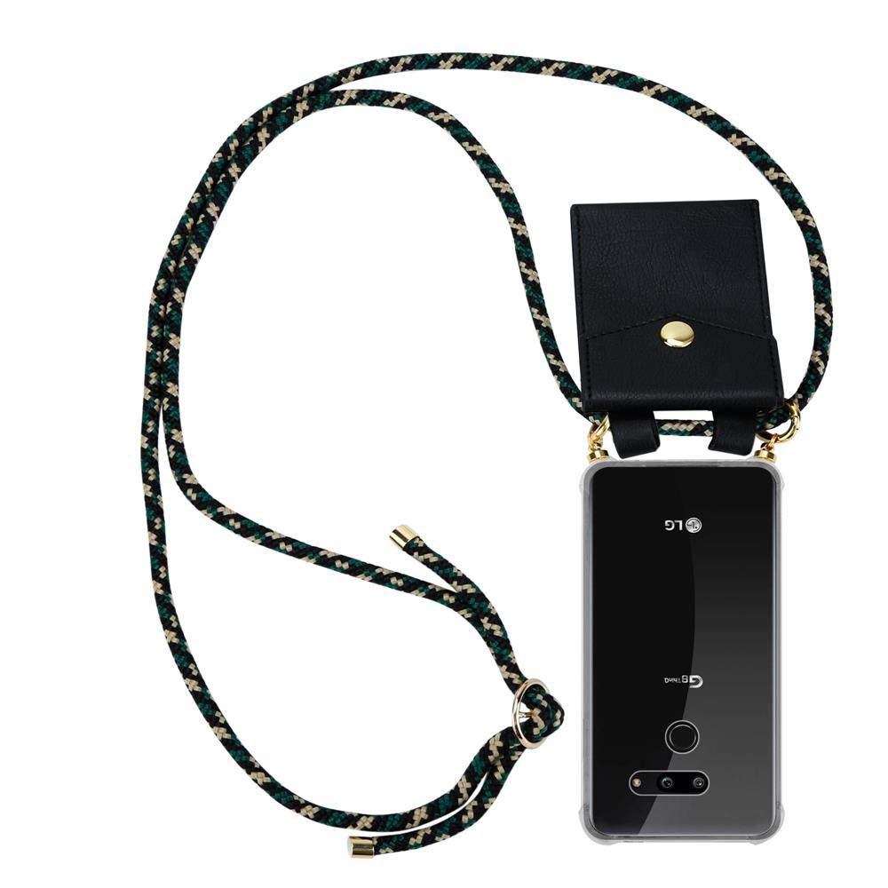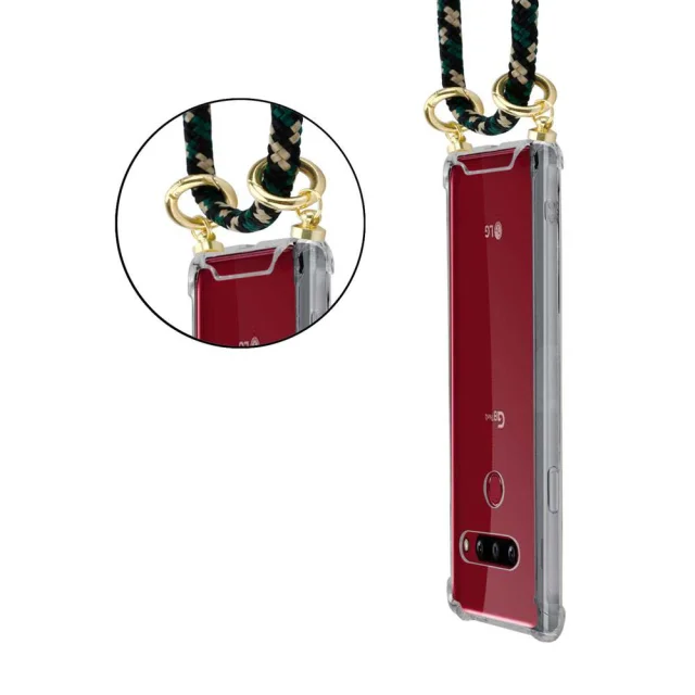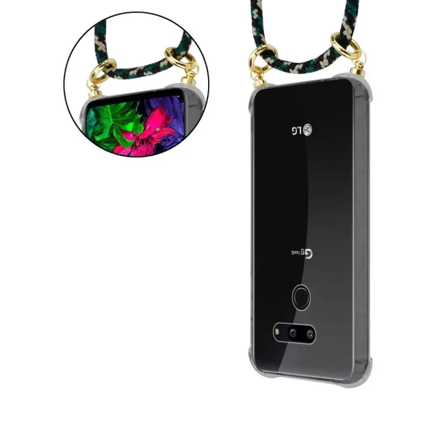 CADORABO CADORABO BEACIJA Združljiva z LG -jem v kamuflažbi - Silikonski zaščitni pokrov z zlatimi obroči, jermen za vrvice in snemljivimi ohišjem