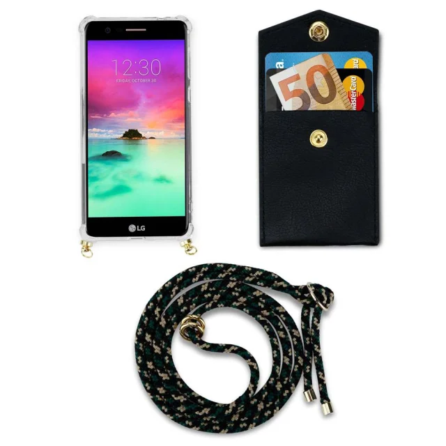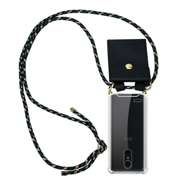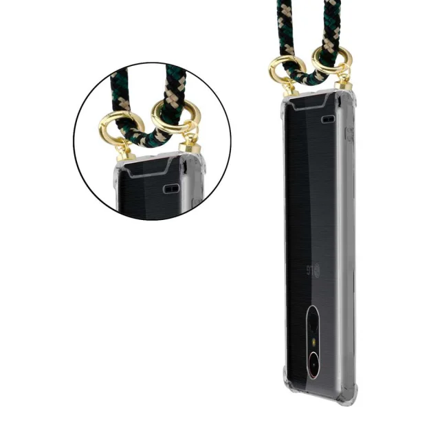 CADORABO CADORABO BEACIJA Združljiva z LG -jem v kamuflažbi - Silikonski zaščitni pokrov z zlatimi obroči, jermen za vrvice in snemljivimi ohišjem