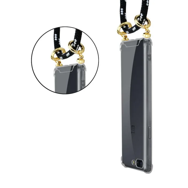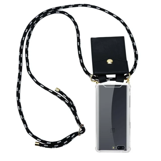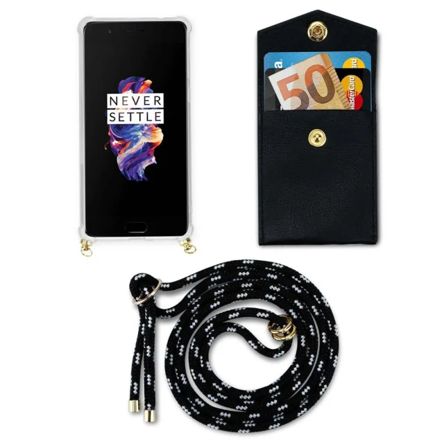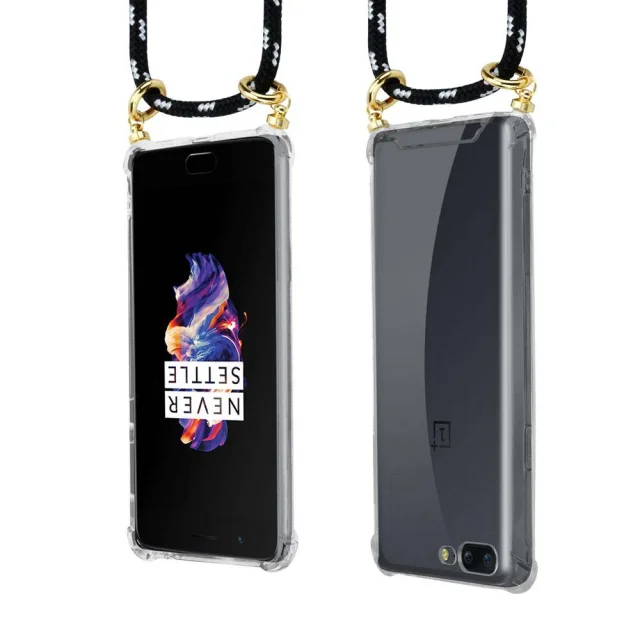 CADORABO CADORABO BEACIJA Združljiva z OnePlus v črnem srebru - silikonski zaščitni pokrov z zlatimi obroči, kabelskim pasom in snemljivim primerom