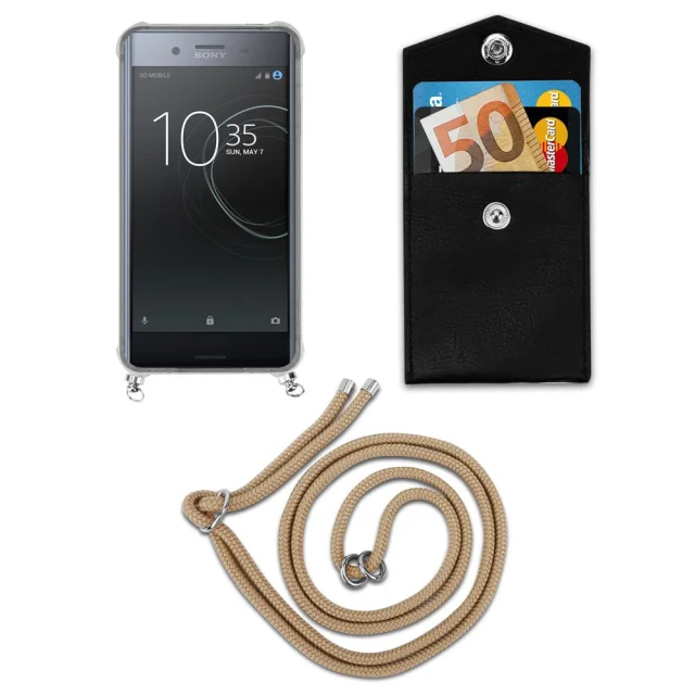 CADORABO CADORABO BEACIJA ZNANOVANJA SONY SONY v Shiny Brown - Silikonski zaščitni pokrov s srebrnimi obroči, jermen za vrvice in snemljivimi ohišjem