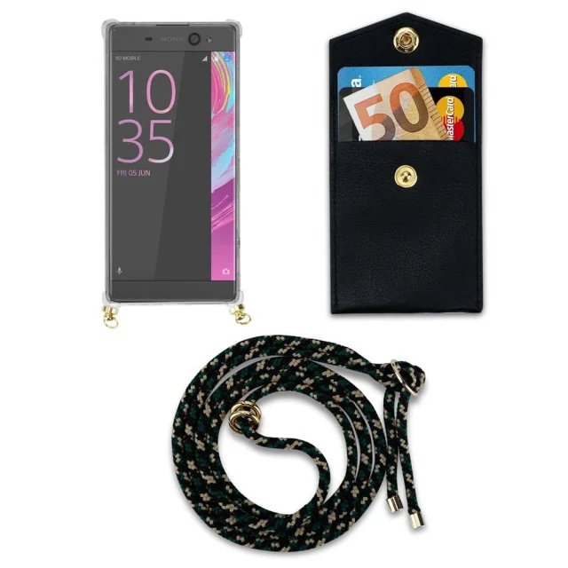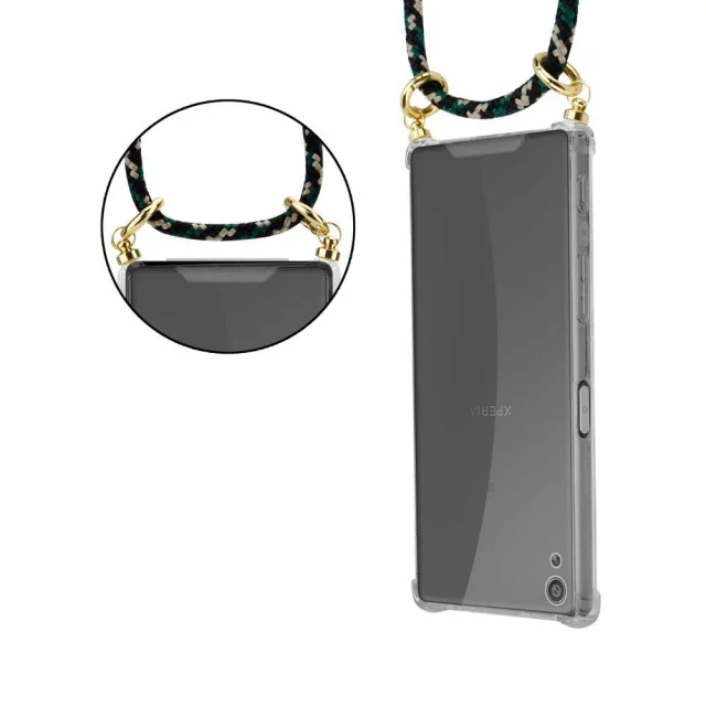 CADORABO CADORABO BEACIJA ZNANOVANJE SONY s Sonyjem v kamuflažbi - Silikonski zaščitni pokrov z zlatimi obroči, jermen za vrvi in snemljiv ohišje