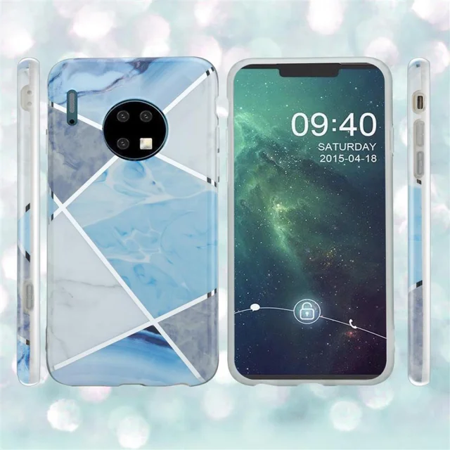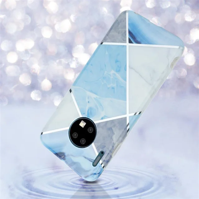 CADORABO CARE, združljiv s Huawei v modrem belem sivem marmorju št. 2 - Zaščitni pokrov iz silikona TPU z vzorcem mozaika