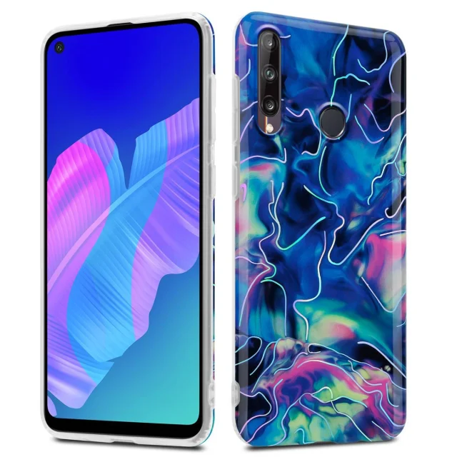 CADORABO CARE, združljiv s Huawei v modrem roza marmorju št. 17 - Zaščitni pokrov iz silikona TPU z vzorcem mozaika
