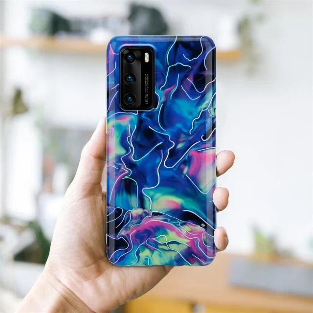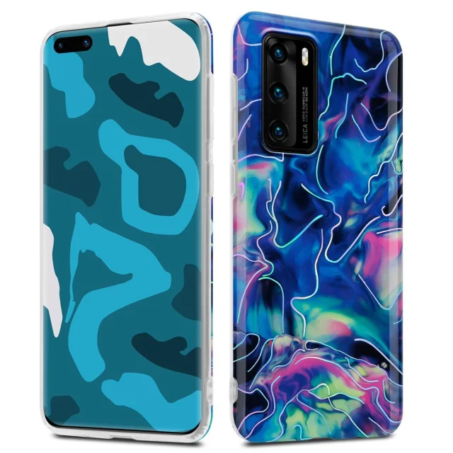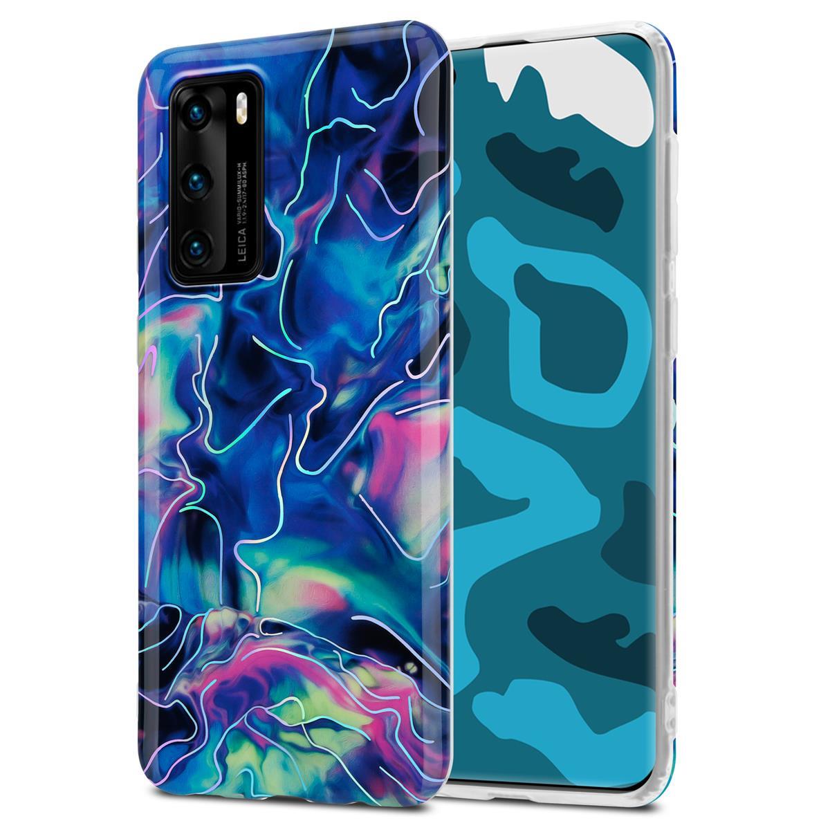 CADORABO CARE, združljiv s Huawei v modrem roza marmorju št. 17 - Zaščitni pokrov iz silikona TPU z vzorcem mozaika