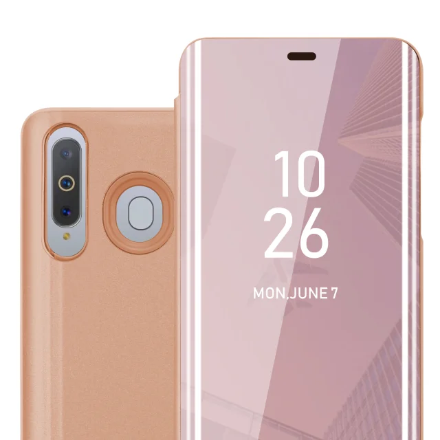 CADORABO CARE, združljiv s Samsungom v Kunzit Pink - prozorno za zaščito z ogledalom z zrcalo z funkcijo stojala 360 stopinj zaščita