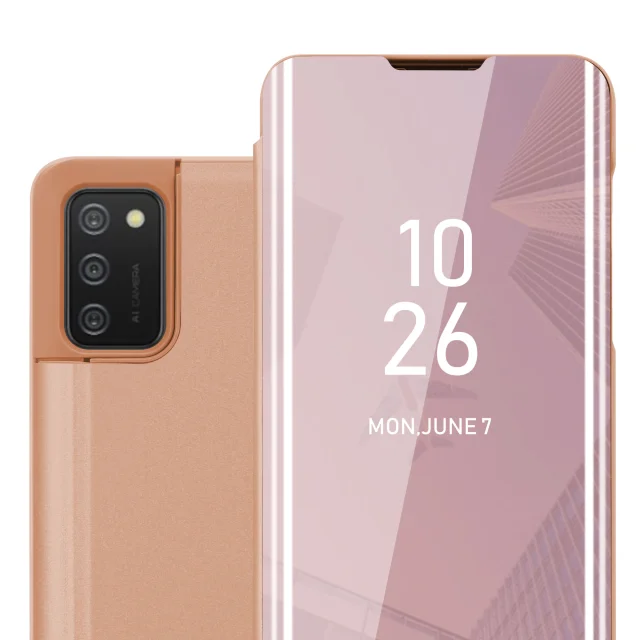 CADORABO CARE, združljiv s Samsungom v Kunzit Pink - prozorno za zaščito z ogledalom z zrcalo z funkcijo stojala 360 stopinj zaščita