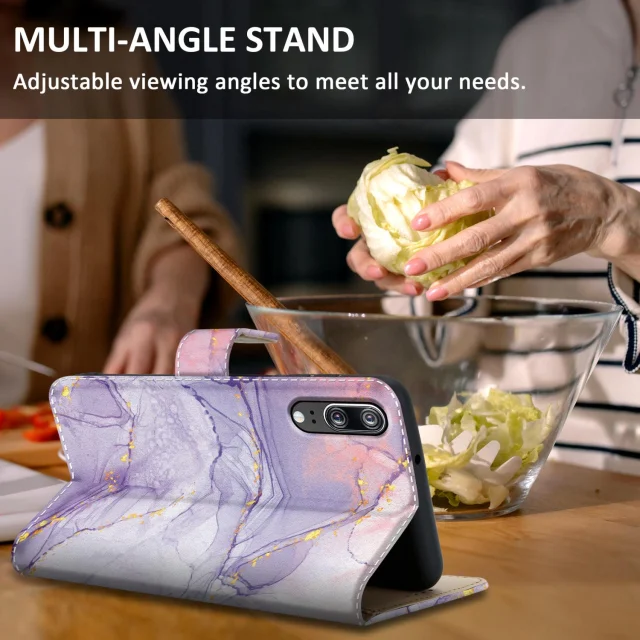 Cadorabo Case, združljiv s Huawei - Design roza vijolični marmor št. 5 - Zaščitni pokrov z magnetnim zapiranjem, funkcijo stojala in režo za kartico