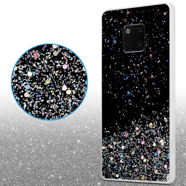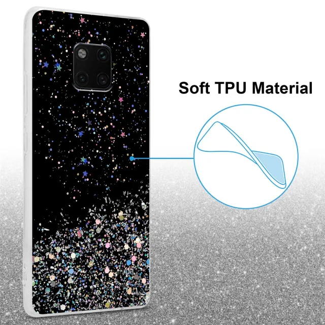 Cadorabo Case, združljiv s Huawei v črni barvi z bleščicami - zaščitni pokrov iz fleksibilnega silikona TPU s penečimi bleščicami