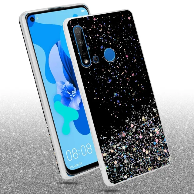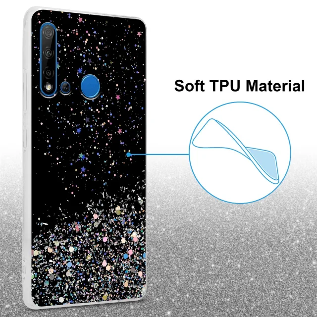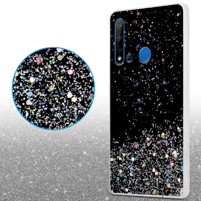 Cadorabo Case, združljiv s Huawei v črni barvi z bleščicami - zaščitni pokrov iz fleksibilnega silikona TPU s penečimi bleščicami
