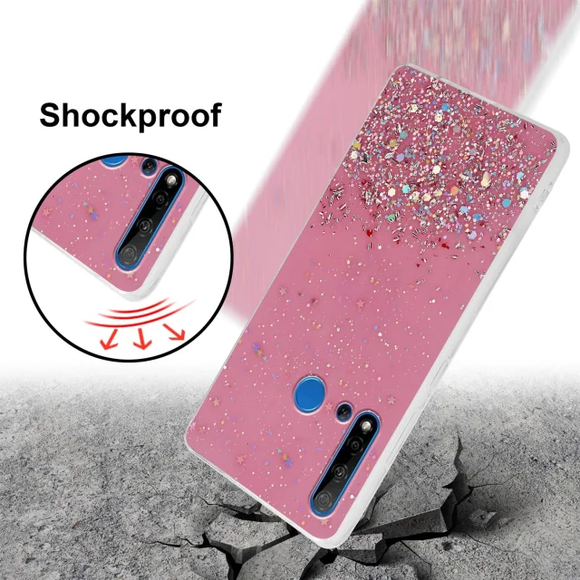 Cadorabo Case, združljiv s Huawei v roza barvi z bleščicami - zaščitni pokrov iz fleksibilnega silikona TPU s penečimi bleščicami