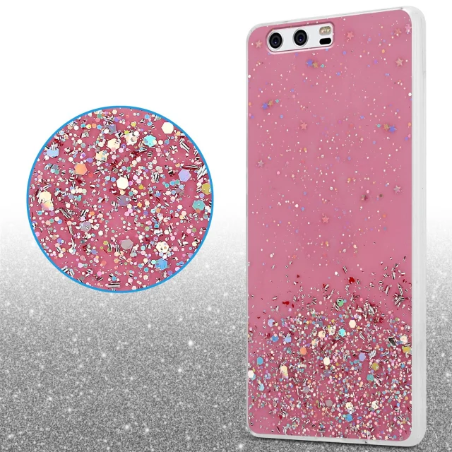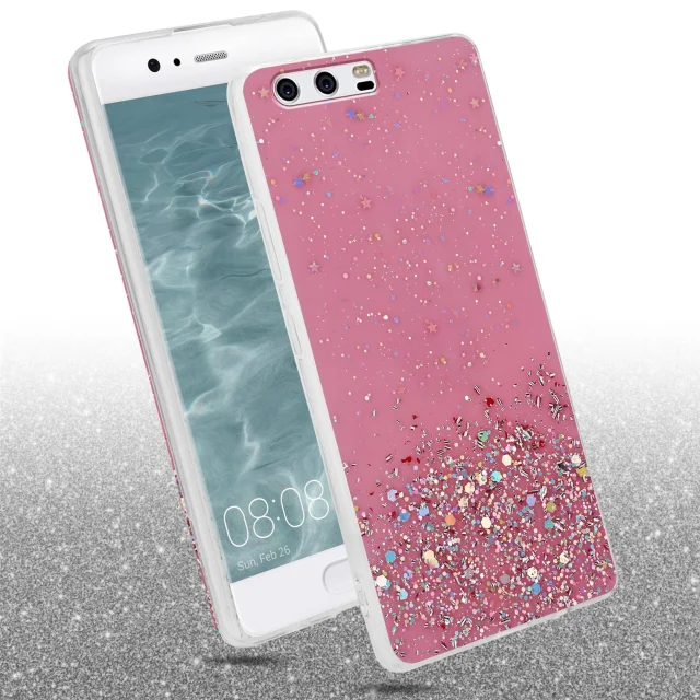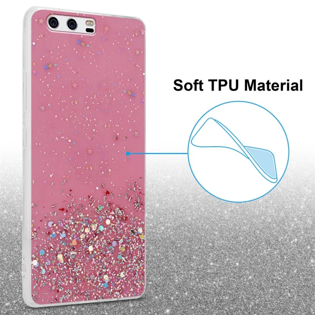 Cadorabo Case, združljiv s Huawei v roza barvi z bleščicami - zaščitni pokrov iz fleksibilnega silikona TPU s penečimi bleščicami