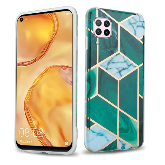 Cadorabo Case, združljiv s Huawei v temno zelenem belem zlatim marmorju št. 6 - Zaščitni pokrov iz silikona TPU z vzorcem Mosaic