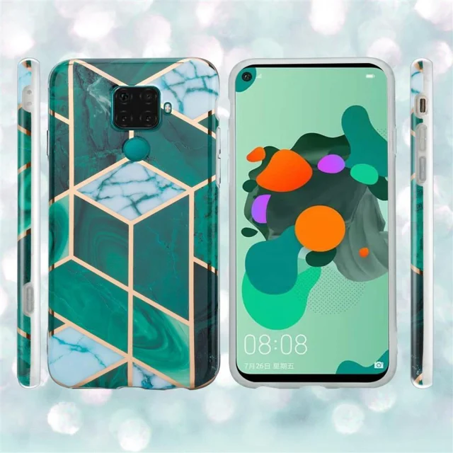 Cadorabo Case, združljiv s Huawei v temno zelenem belem zlatim marmorju št. 6 - Zaščitni pokrov iz silikona TPU z vzorcem Mosaic